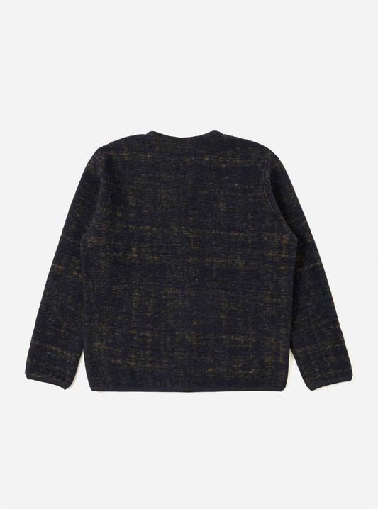 UNIVERSAL WORKS CARDIGAN MARBLE FLEECE - NAVY