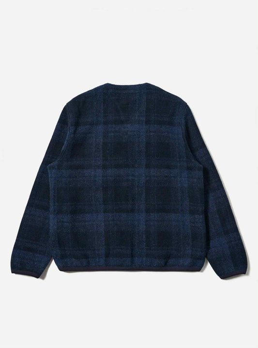 UNIVERSAL WORKS CARDIGAN MOH CHECK FLEECE - NAVY