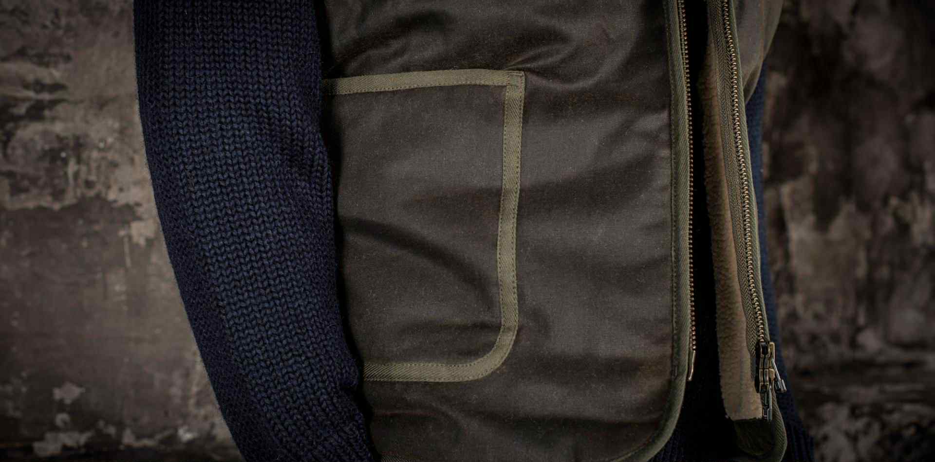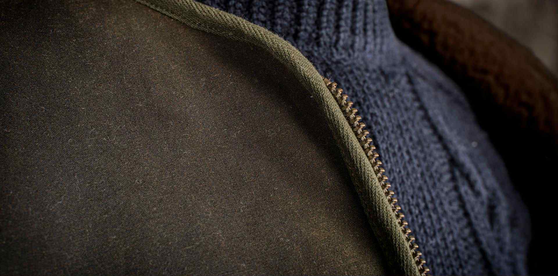 - Toile 100% coton waxé 395gr de chez la manufacture British Millerain en Angleterre
