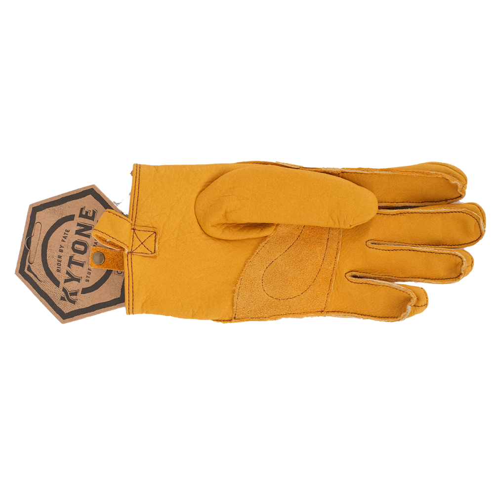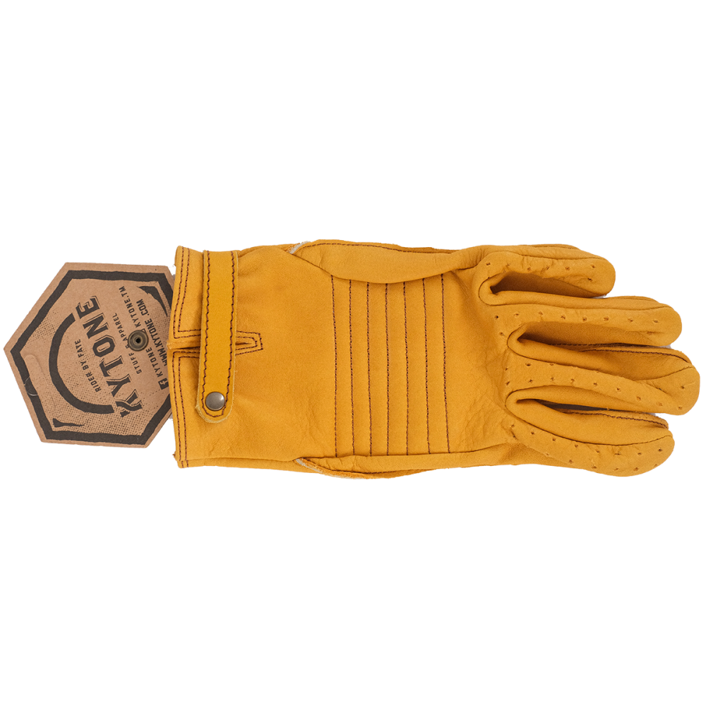 Gants Moto CE en cuir, renfort sur la paume, bride réglable au poignet, coutures marron, perforés pour une aération optimale.