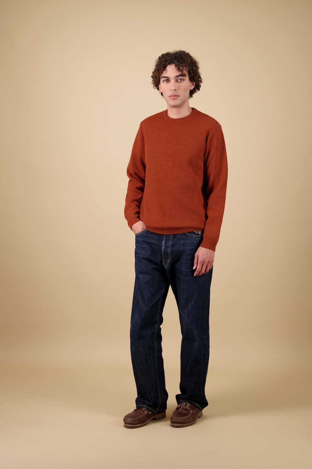 Le pull Youri est le premier pull de la collection Nitto. C’est un classique dans sa forme et son apparence, alors qu’il est en fait le résultat d’une multitudes d’essais à toutes les étapes de la production associés au savoir-faire d’expert du tricot.