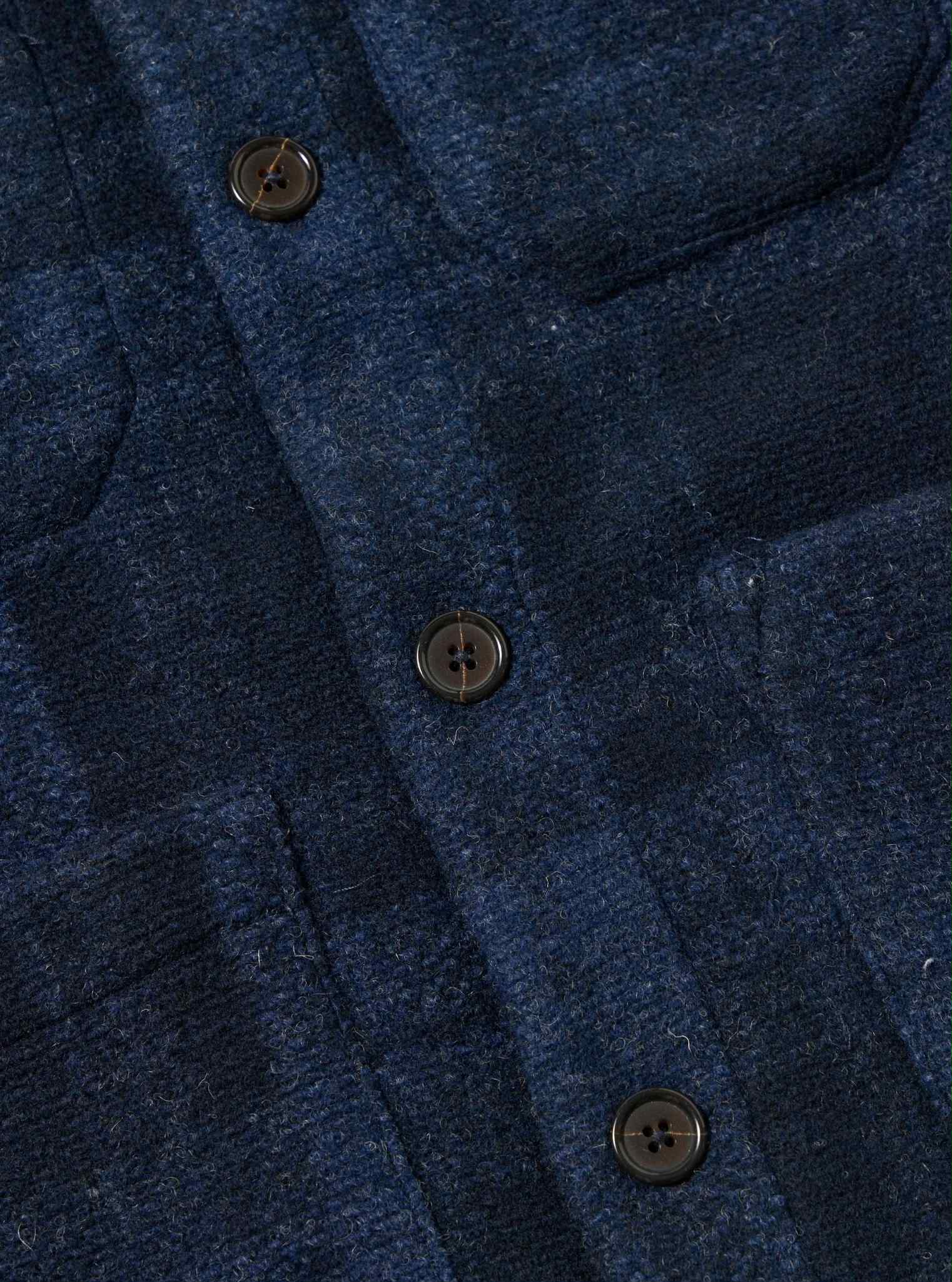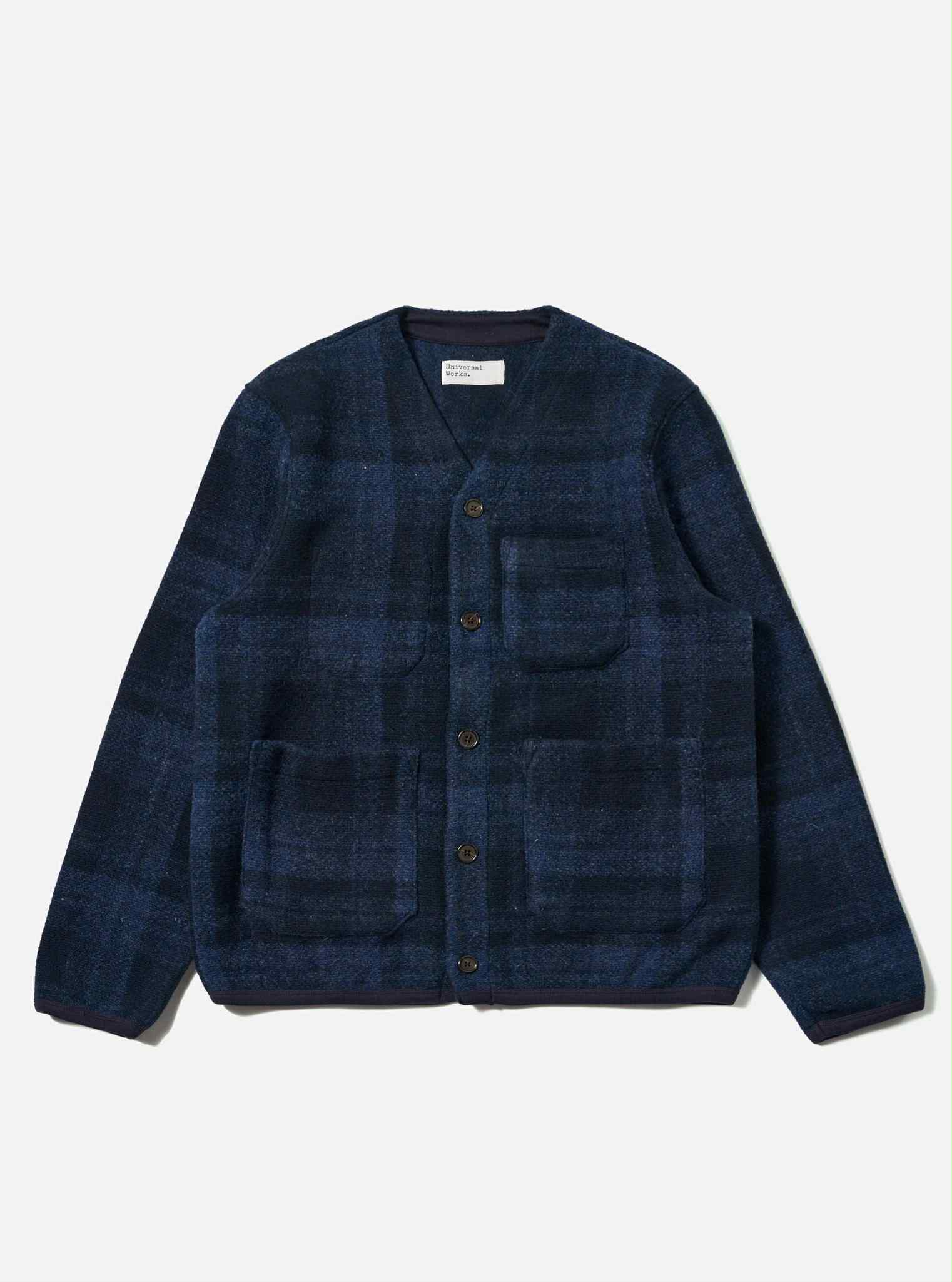 UNIVERSAL WORKS CARDIGAN MOH CHECK FLEECE - NAVY