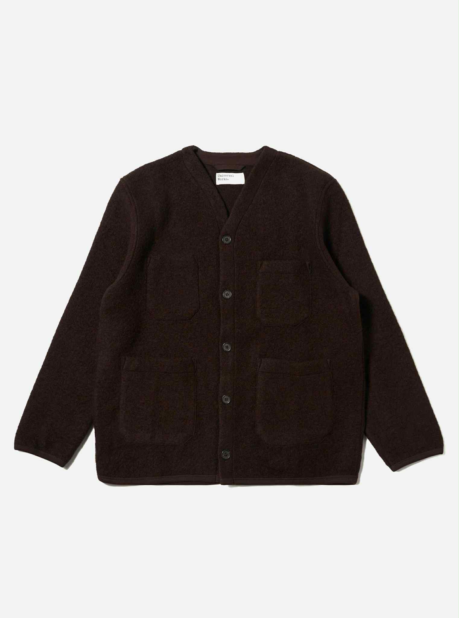 UNIVERSAL WORKS CARDIGAN WOOL FLEECE - BROWN