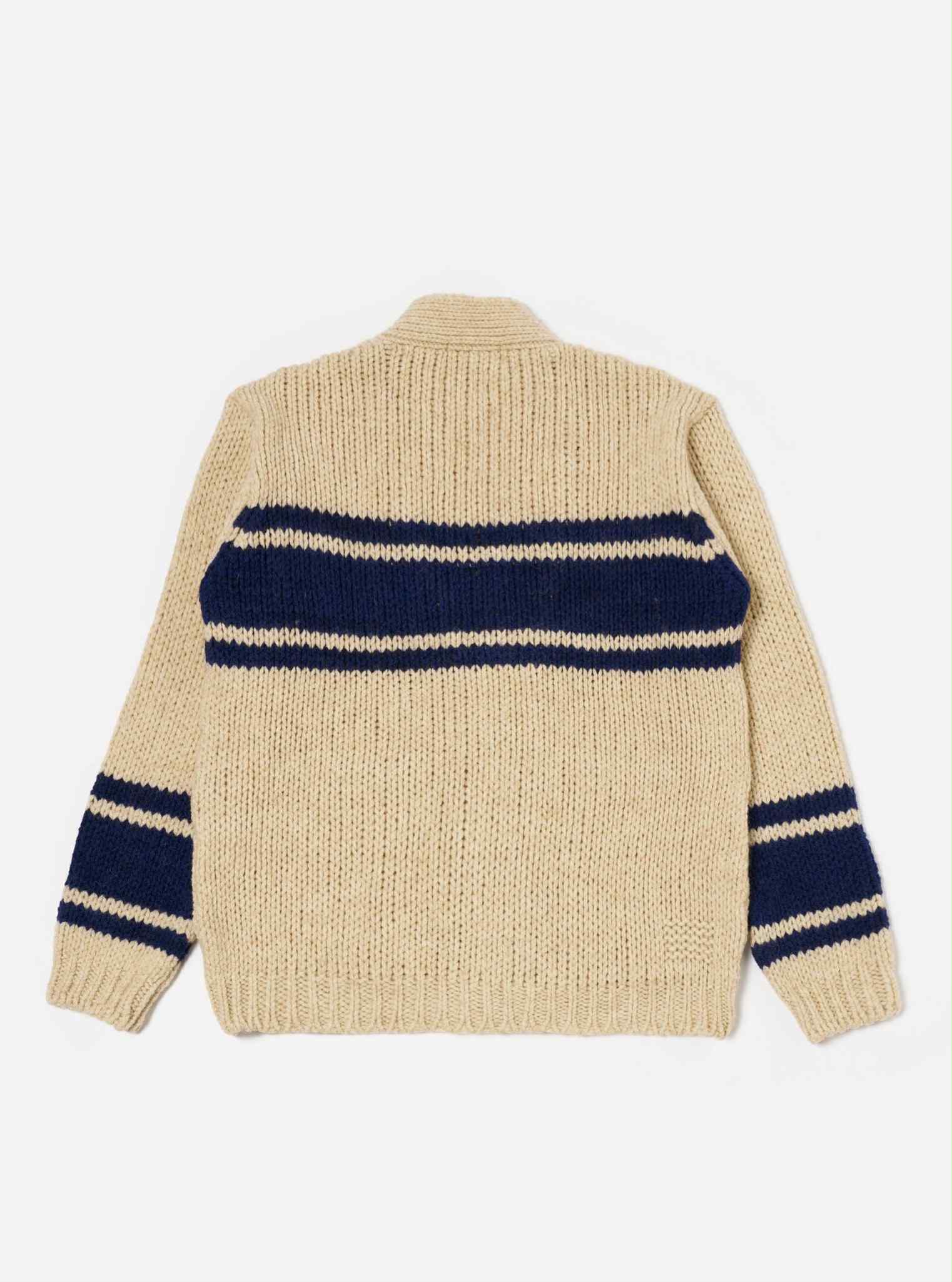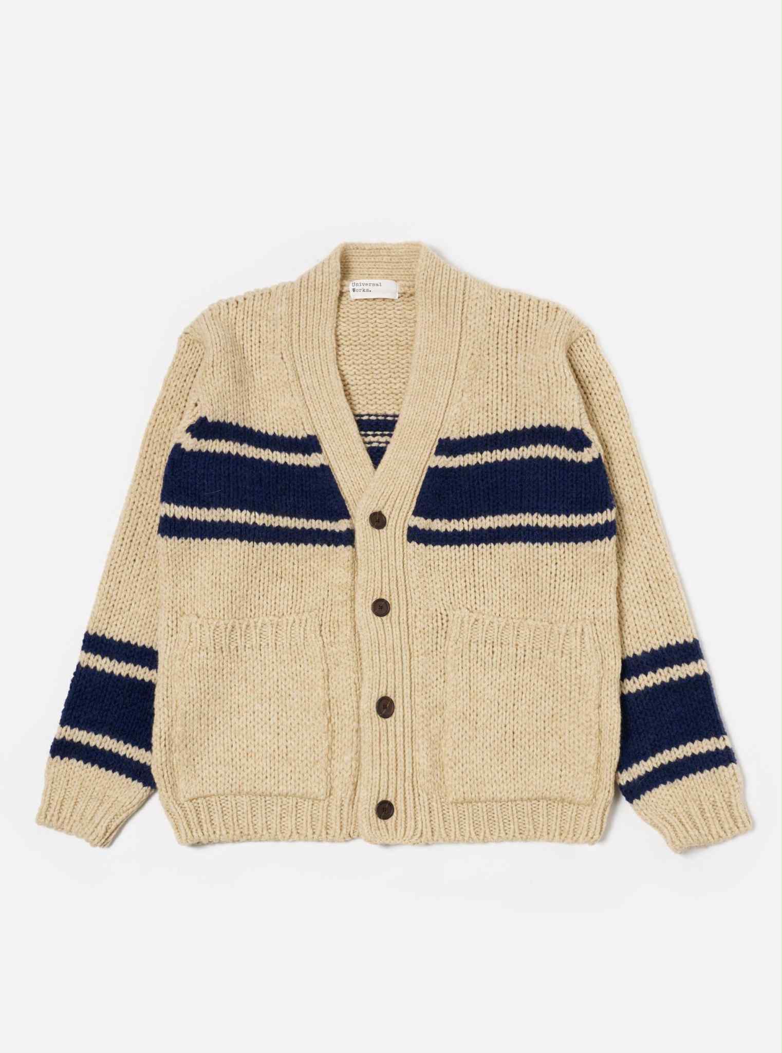 UNIVERSAL WORKS LANGDALE CARDIGAN CHUNKY KNIT STRIPE - SAND